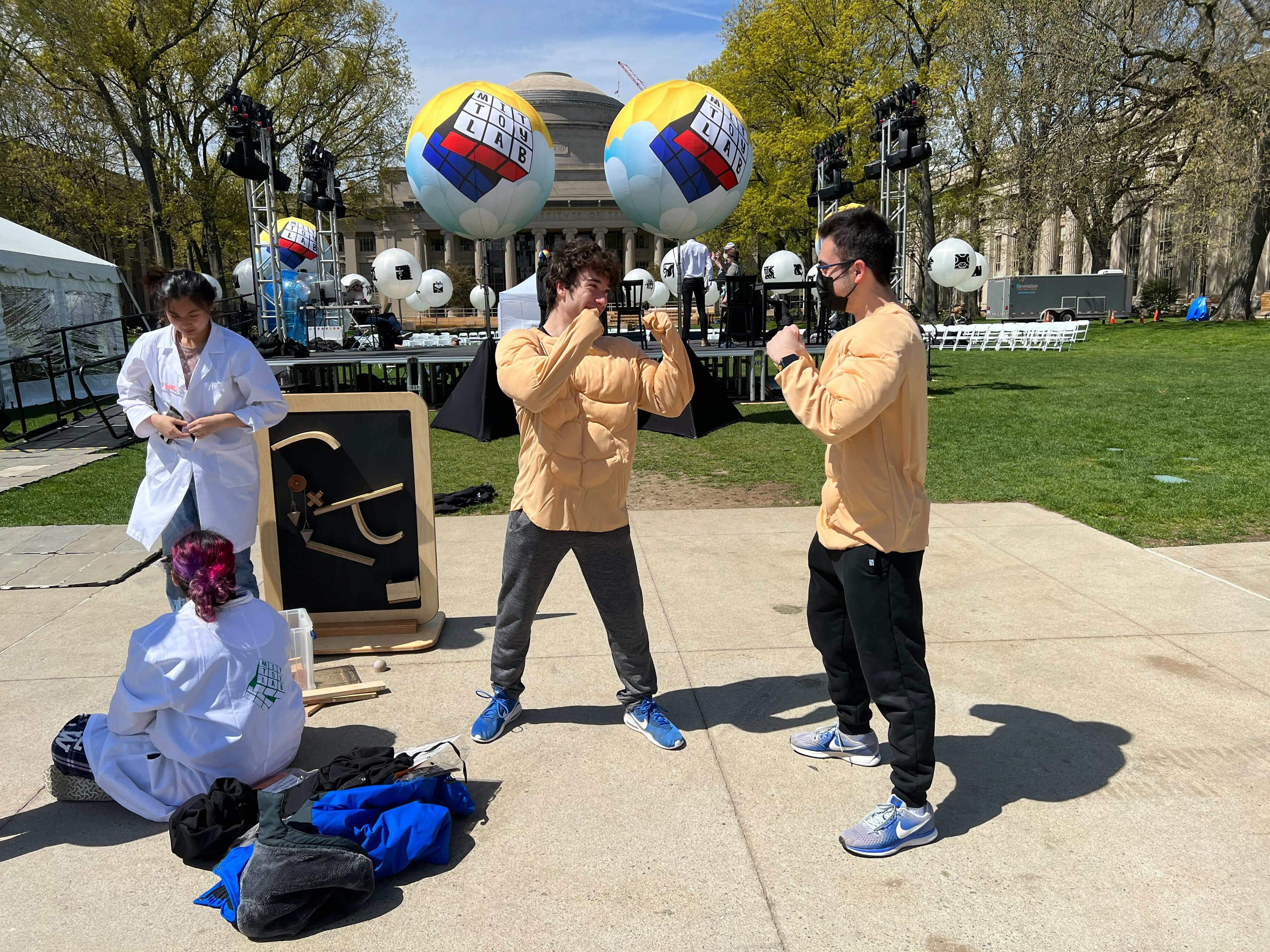 The semester culminated in a carnival where each team performed a skit presenting their toy. This photo was taken at rehearsal the day before.