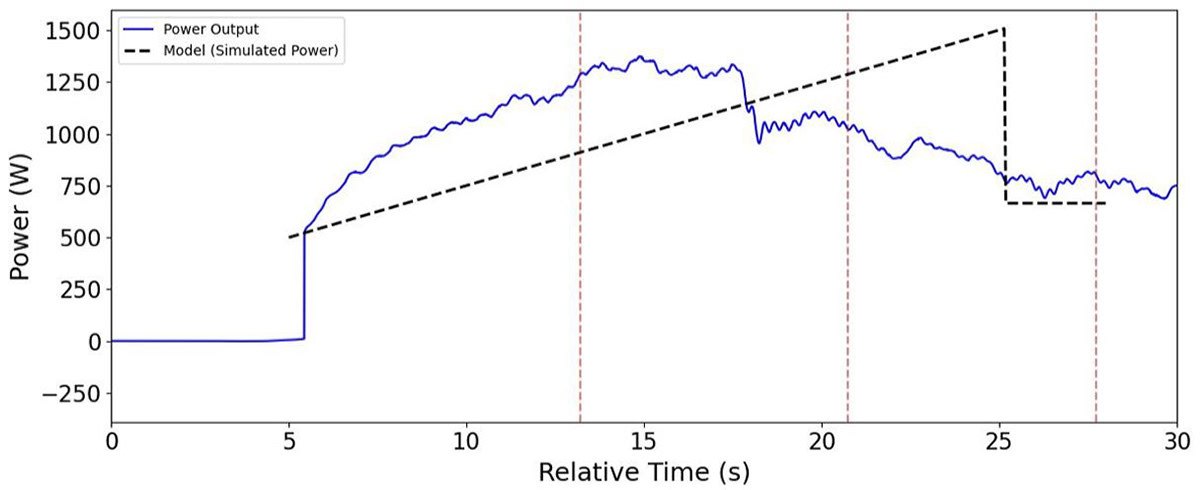 To model the acceleration phase, we examined existing data on riders' power output during the race, and decided to approximate their power output as linearly increasing, then leveling off.